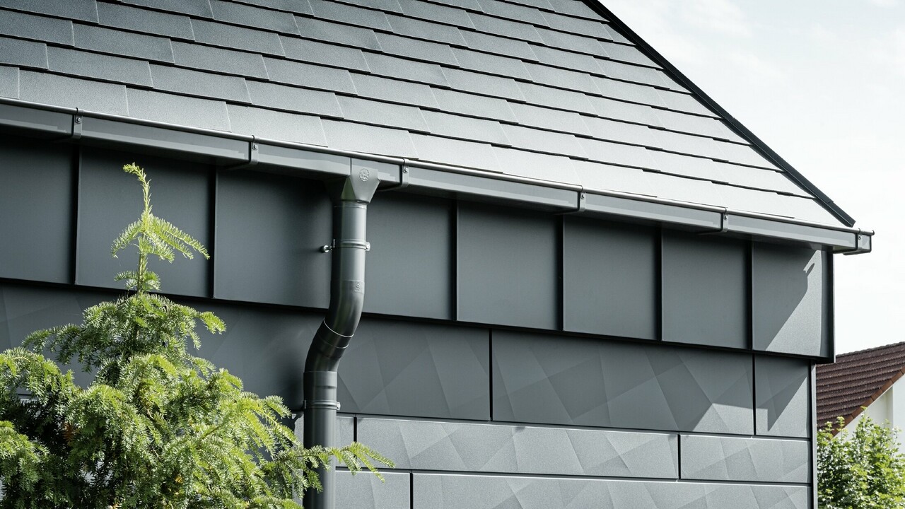 Neben dem Material ist auch die Verarbeitung des Dachs wichtig für die Linie des Hauses. Um die Firstabdeckung beim Krüppelwalm weglassen zu können, arbeitete der Architekt nur mit Überfalzung. „Die Linien, die durch die Überfalzung entstehen, ergänzten hervorragend mein Konzept der Vertikalität, das sich auch im mineralischen Putz wiederfindet und sich überhaupt durch das ganze Gebäude zieht“, erzählt Franz Seebacher. Gerade in kleineren Ortschaften ist es oft eine Herausforderung, in Ortsstrukturen einzugreifen, da Architektur bekannterweise polarisiert. Gerade der Glanzgrad des Prefalz Dachs hebt sich von anderen Exemplaren in der Umgebung deutlich ab. „Durch die natürliche Bewitterung bekommt das Dach aber schon nach kurzer Zeit eine leichte, ganz eigene Patina“, sagt Seebacher.