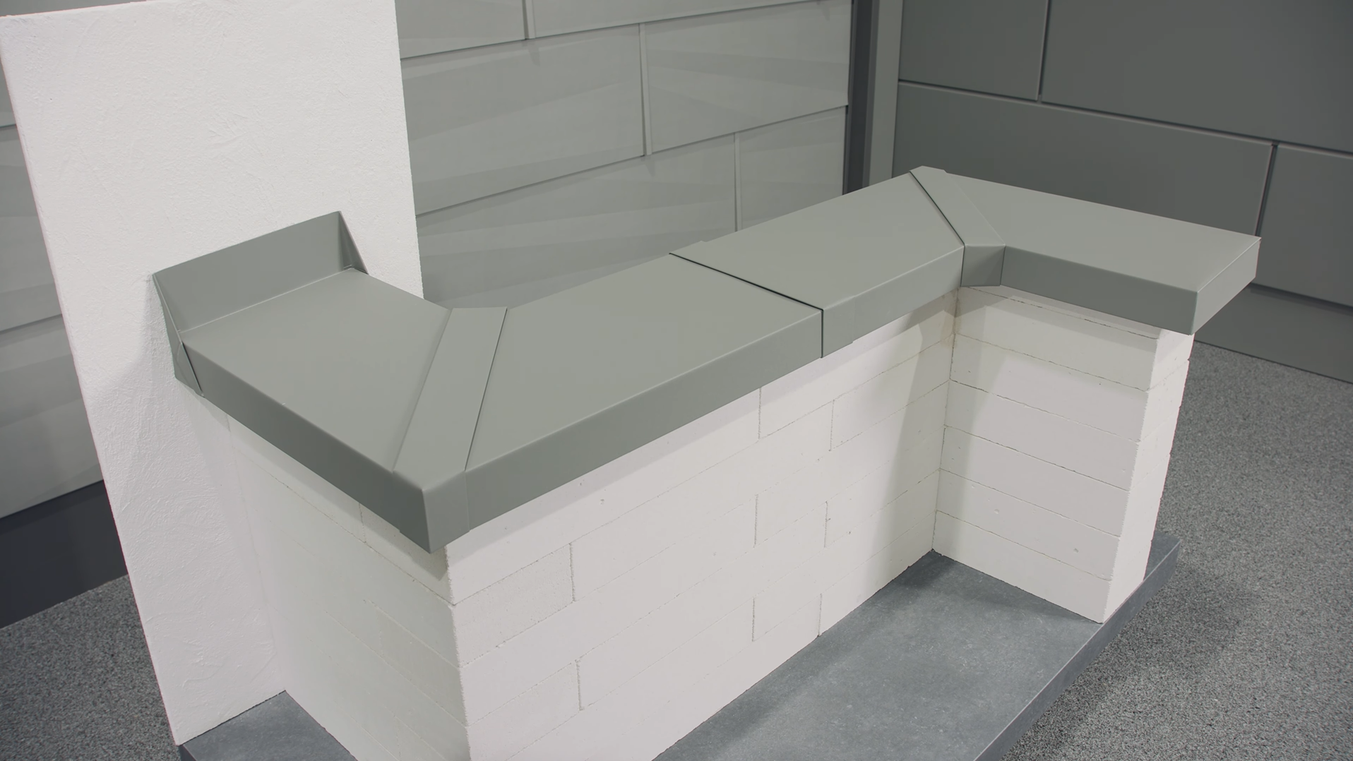 Innen- oder Außenecke mit integriertem Wandanschluss: Attika-Mauerabdeckung: