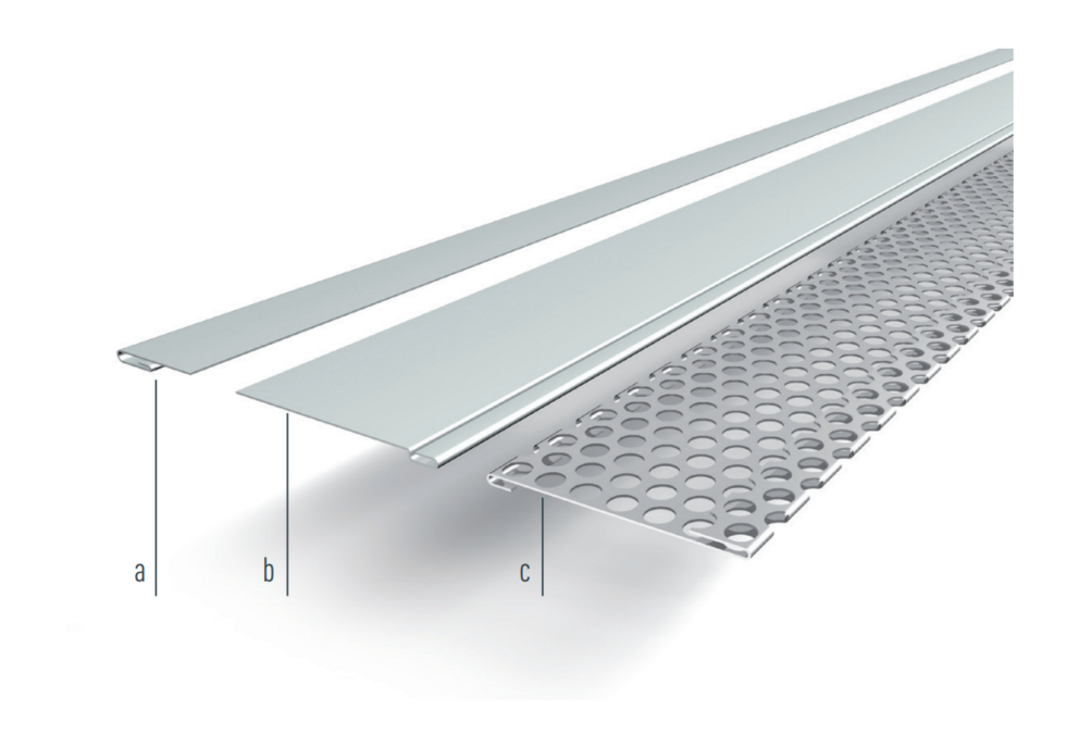 Pour le raccordement inférieur, les profilés suivants sont préfabriqués à partir de la bande complémentaire PREFA ou de la tôle perforée PREFA :