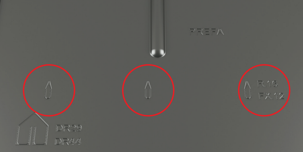Alignez la bande de départ avec l’encoche gravée pour la tuile R.16 ou le panneau de façade FX.12 vers le milieu de la façade.