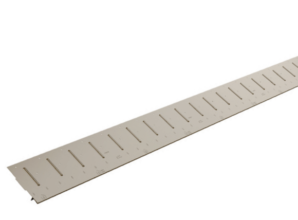Après avoir raccordé la surface de base de la façade ventilée (tôle perforée et bande de recouvrement), vous pouvez procédez à la pose de la bande de départ. La réalisation d’une façade commence toujours par la bande de départ avec des produits PREFA petit format. Il est important de réaliser la pose de la bande de départ avec précision, car cela joue un rôle déterminant pour l’aspect visuel de la façade.
