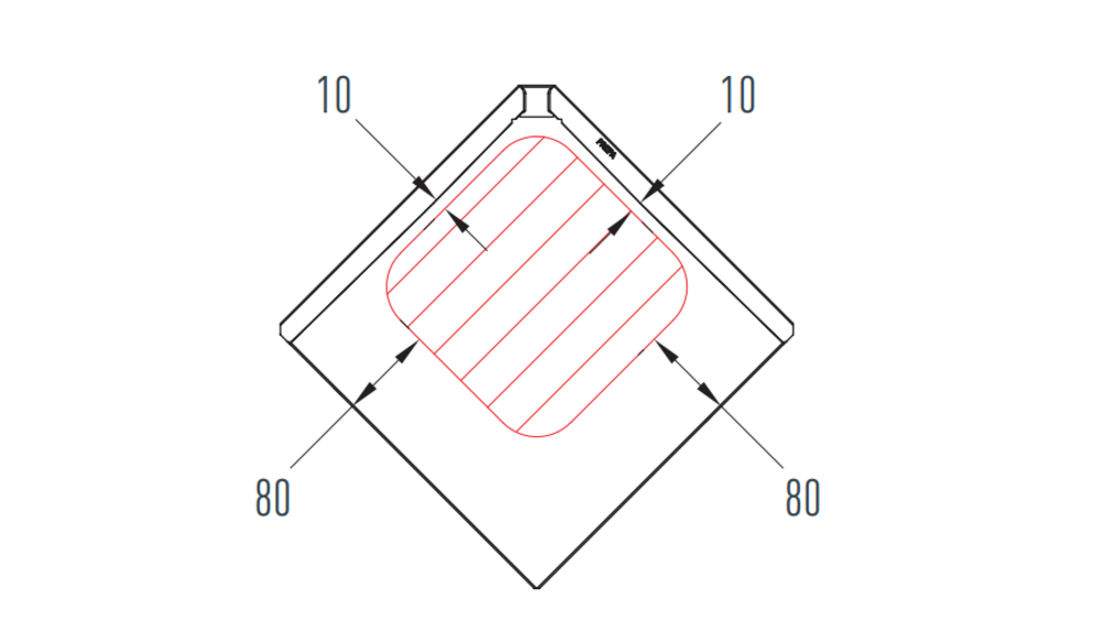 Si vous installez quelque chose sur la façade (comme des lampes), respectez la zone de pose autorisée des losanges de façade 29 x 29 pendant l’installation. S’il n’est pas possible de respecter la zone de montage, il faut agrafer une plaque de support.