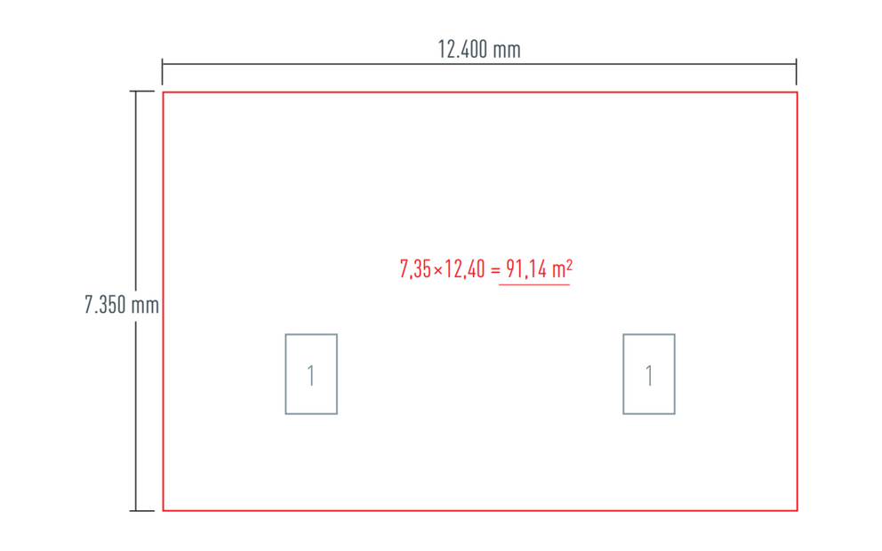 Le calcul ne tient compte ni des chutes, ni des ouvertures de fenêtres et de portes. En règle générale (ouvertures jusqu’à environ 3 m²), les chutes s’annulent et sont compensées par l’arrondi des unités de conditionnement.