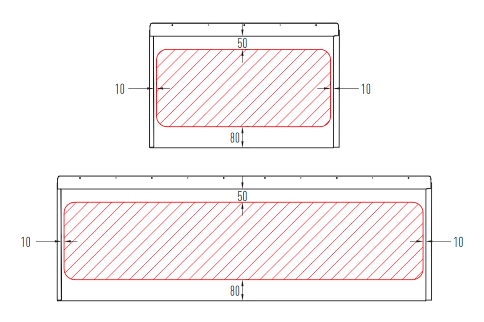 Si vous installez quelque chose sur la façade (comme des lampes), respectez la zone de pose autorisée des panneaux de façade FX.12 pendant l’installation. S’il n’est pas possible de respecter la zone de montage, il faut agrafer une plaque de support.