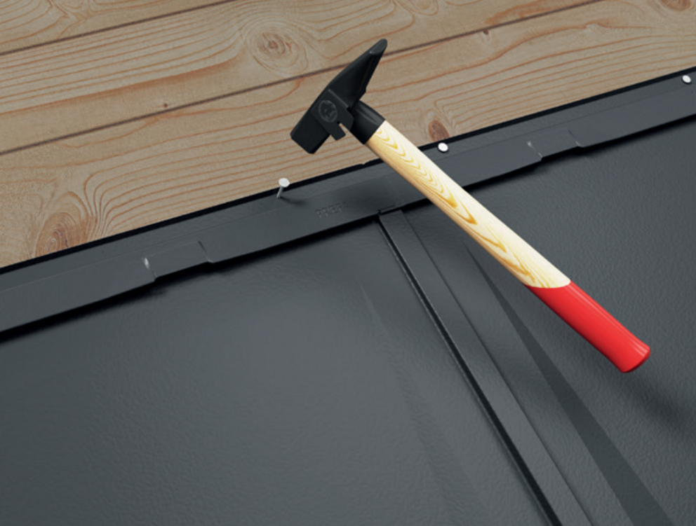 Fixez les tuiles R.16 avec les clous annelés 2,8/25 fournis (fixation standard 3 pièces par tuile R.16).