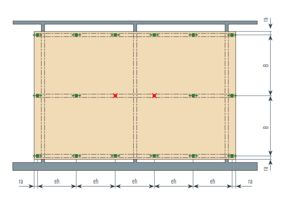 • Structure de support en acier zingué : au moins 60×60×2 mm (ou valeurs équivalentes sur le plan statique)