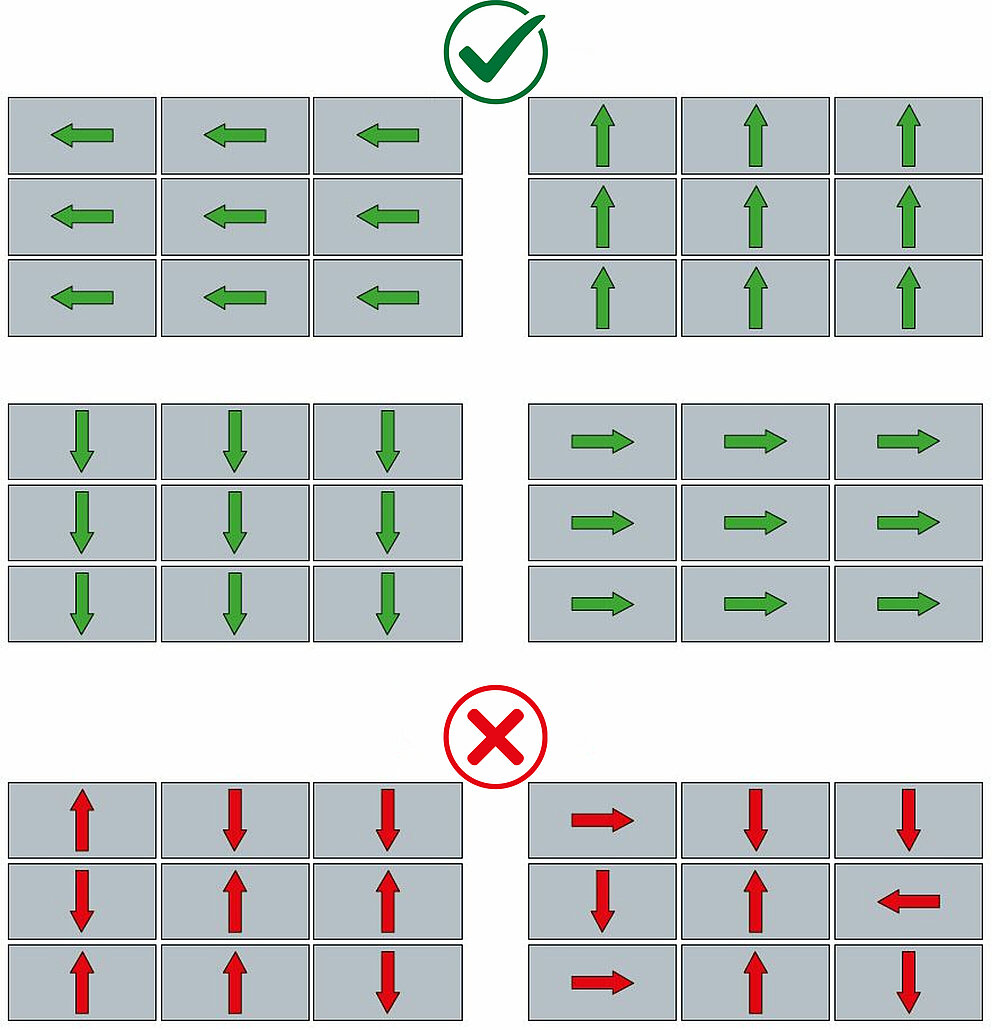 Le sens du laquage est indiqué par des flèches imprimées à la fois au dos des panneaux et sur le film de protection.