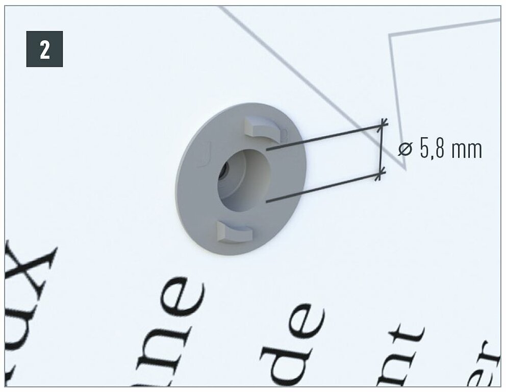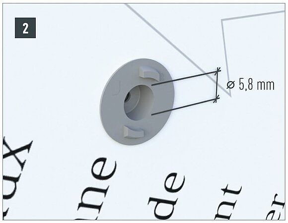 Afin de garantir une perforation parfaitement centrée dans la sous-construction, le perçage doit être uniquement effectué à l'aide des douilles de centrage pour points fixes et coulissants adaptées au système de fixation.