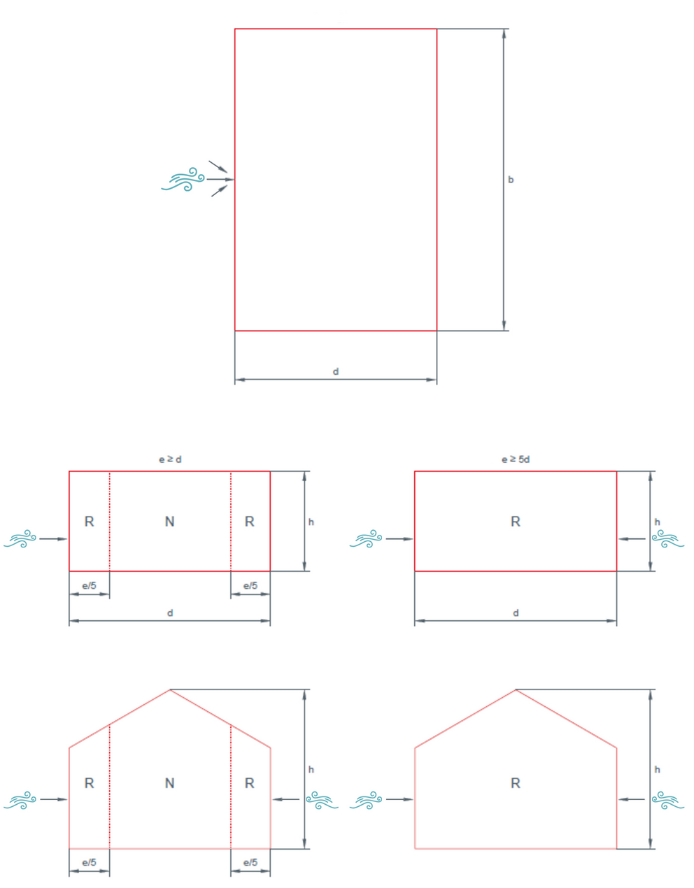 b = dimensions perpendiculairement au vent