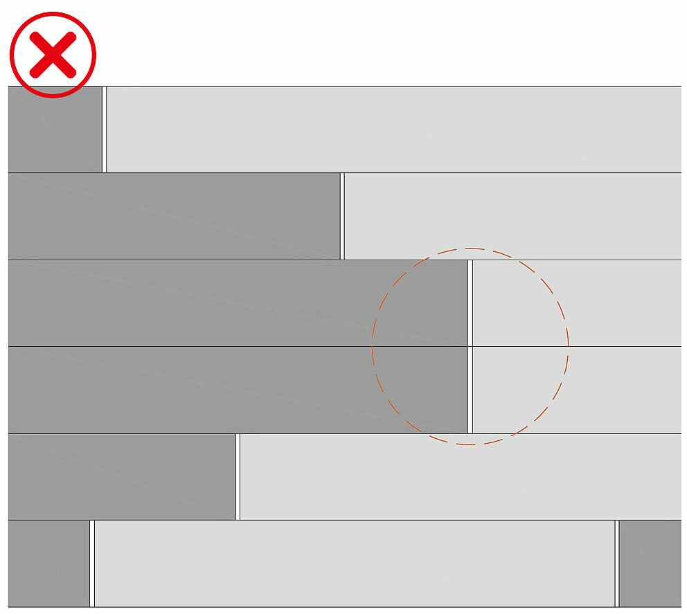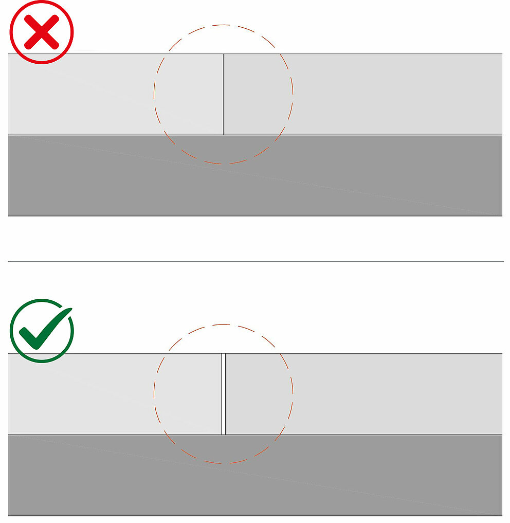 Il n’est pas possible de poser des jointures PREFA les unes au-dessus des autres :