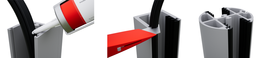 Les joints de profil en applique des profils muraux doivent être protégés de la salissure et des rayonnements UV, p. ex. à l’aide de caches de protection.