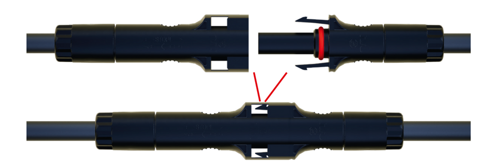 Les lignes de chaîne en entrée et sortie sont livrées préassemblées au départ de l’usine. Leurs extrémités sont dotées respectivement de connecteurs photovoltaïques mâle et femelle,