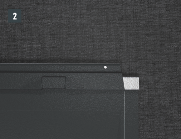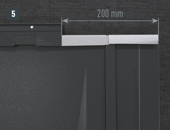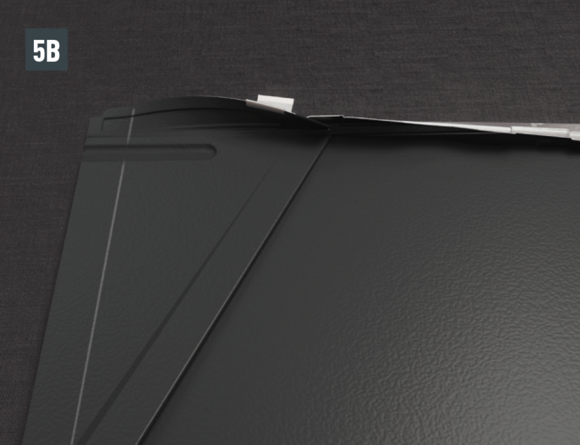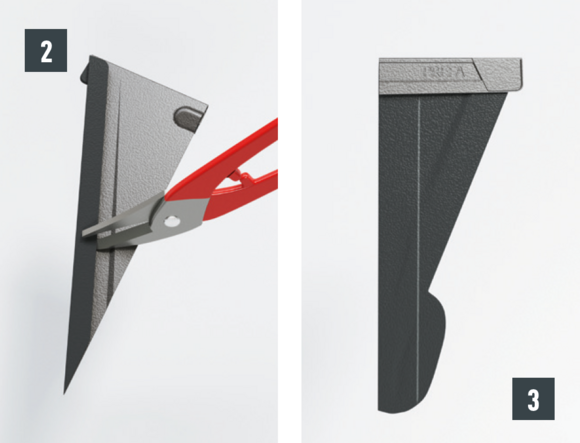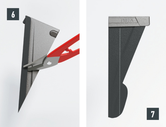 L’agrafe latérale brevetée située en haut doit être découpée au niveau du recouvrement comme illustré à la Fig. 6.