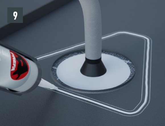 Les pièces en caoutchouc au niveau desquelles le passage est réalisé doivent être traitées avec le talc fourni afin de mieux glisser. Afin de faciliter la pose de la chatière pour panneaux solaires, il est recommandé de plier le tube annelé à 90° vers la gouttière au préalable. Joints d’étanchéité inclus 1 × Ø 32–35 mm et 2 × Ø 10 mm.