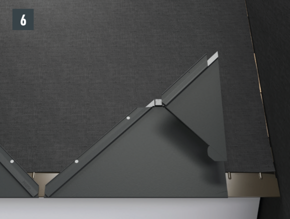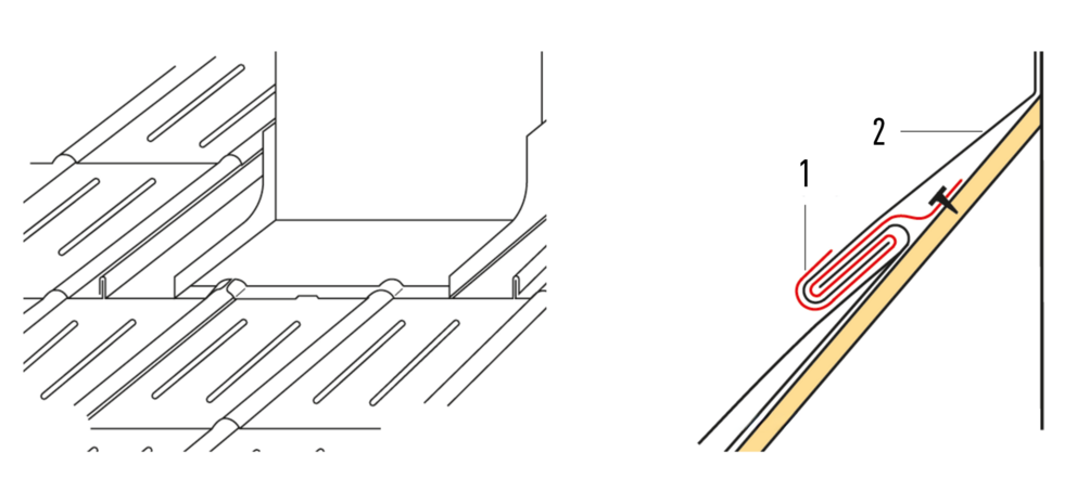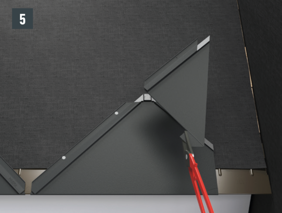 Pour chaque rebord latéral de losange de toiture 29 × 29 ou 44 × 44, les agrafes en oblique vers le bas doivent être découpées et ouvertes sur la partie inférieure.