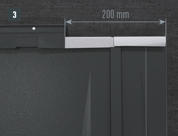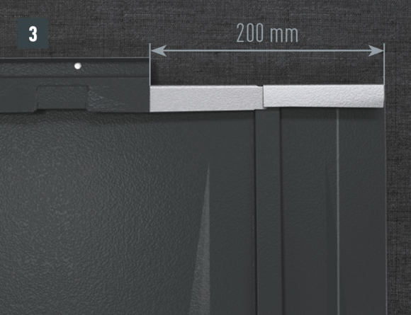 La longueur du couloir de cheminée est déterminée par le produit PREFA installé et la ligne de pureau au-dessus de la cheminée. Emboîtez le couloir au produit de couverture. En haut, le couloir doit être positionné au dessus de l'agrafe supérieur.