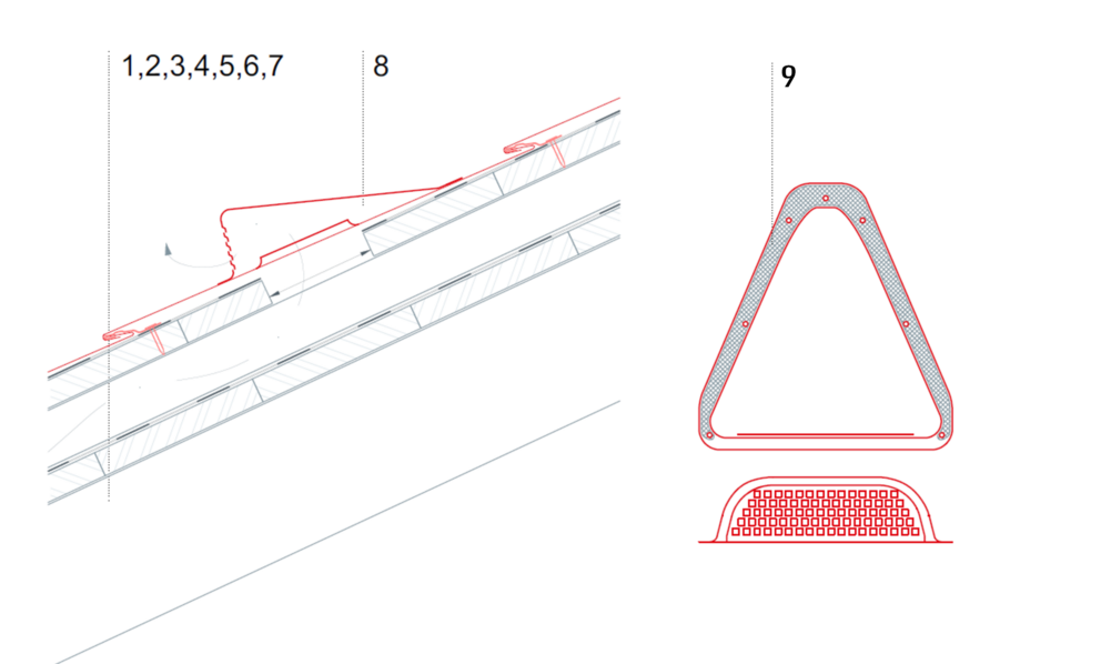 De plus, le passage ou l’intégration dans les différentes couches d’éléments de construction(sous-toiture, isolation thermique, couche d’étanchéité à l’air, etc.) doit être réalisée conformément aux normes et réglementations nationales.