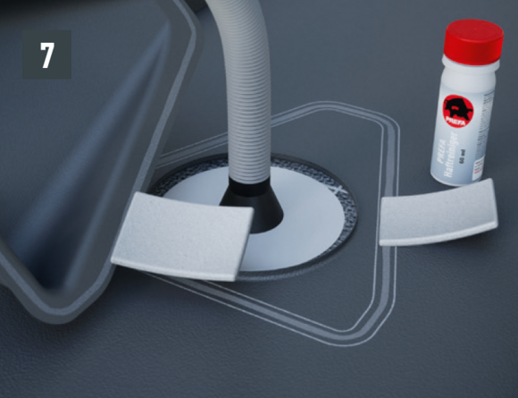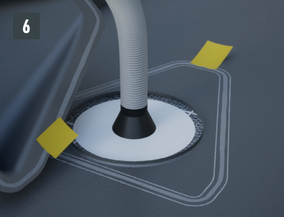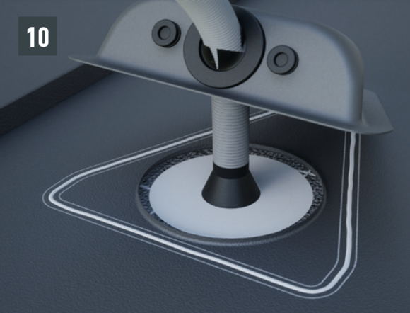 Si la position de la pénétration est prédéfinie et qu’il n’est donc pas possible d’utiliser le raccordement de ventilation, il est possible de réaliser des passages de tuyau à agrafer au moyen d’un raccordement de ventilation. Celui-ci permet de réaliser des passages de tuyaux d’un diamètre compris entre 80 et 125 mm.