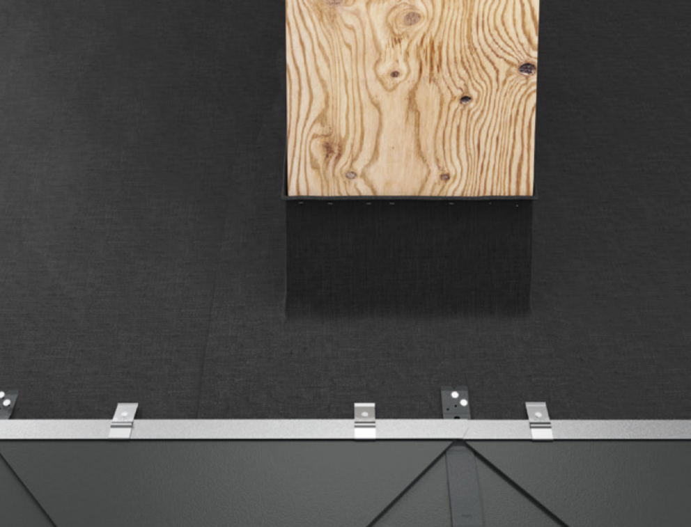 Pour pouvoir monter une installation pare-neige, une marche de toit, des crochets de sécurité ou d’autres accessoires, il est possible de monter une plaque de support, par ex. si une agrafe ou une onde se trouve au niveau d’un chevron. L’accessoire ne doit pas être fixé sur une agrafe ou sur une onde de la couverture PREFA.