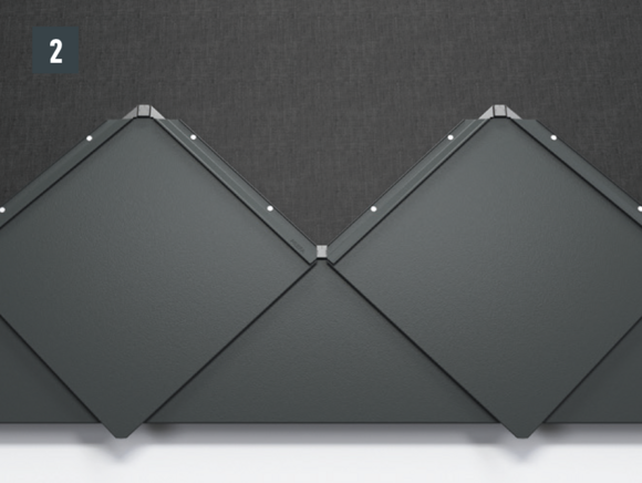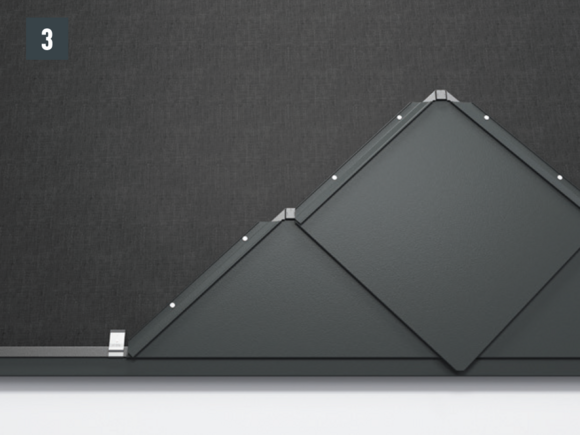REMARQUE : Ne recourbez pas la pointe inférieure du losange de toiture 44 x 44 vers le bas.