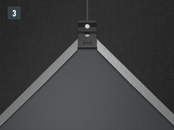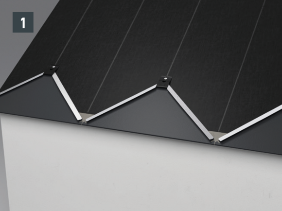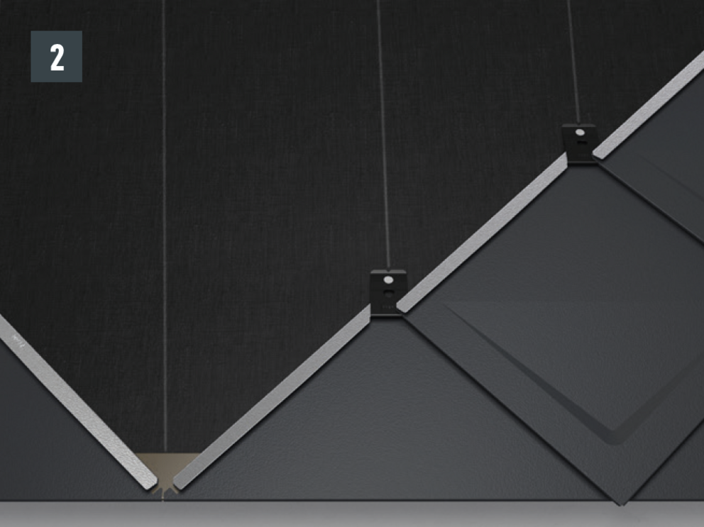 • Insérez le losange de toiture 29 × 29 dans les agrafes et ajustez-le par rapport au traçage vertical (Fig. 1 et 2).