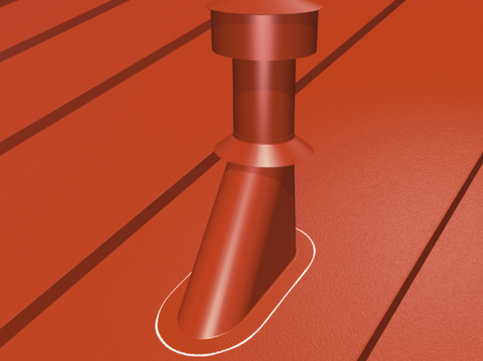 Le raccordement de ventilation ne doit pas être positionné ni monté sur l’agrafe de la couverture de toit PREFALZ. Protégez les passages de tube contre les contraintes mécaniques importantes (par ex. pression de la neige).
