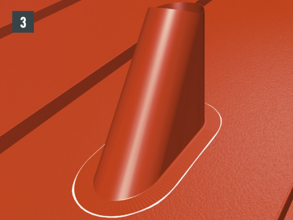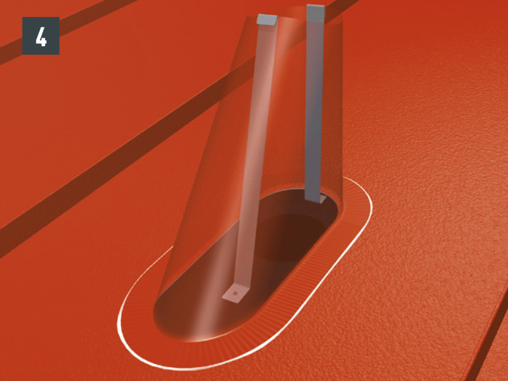 Celle-ci doit être recourbée sur le bord supérieur du raccordement de ventilation à coller et fixée sur le voligeage (fig. 4).