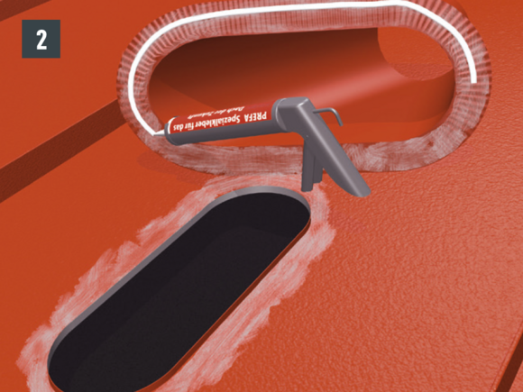 Appliquer la colle spéciale au centre et de manière uniforme sur la bride.