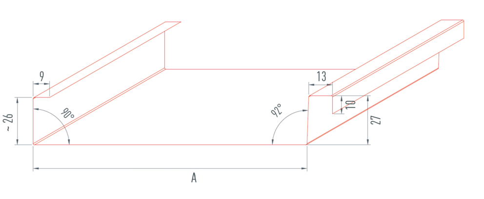 Les angles et dimensions à respecter du profil sont indiqués dans l’illustration ci-dessous et doivent absolument être respectés. Toute modification des dimensions du profil peuvent entraîner une déformation des bacs et une pose incorrecte !