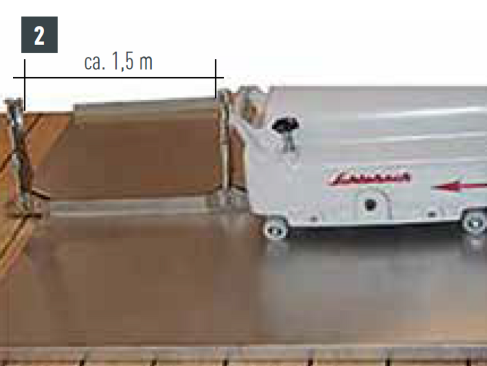 Voordat de vouwmachine in de vouw wordt geplaatst, moet de vouw worden voorbereid over een machinelengte van ca. 35 cm volgens het schema dat is weergegeven (zie bovenstaande afbeelding).