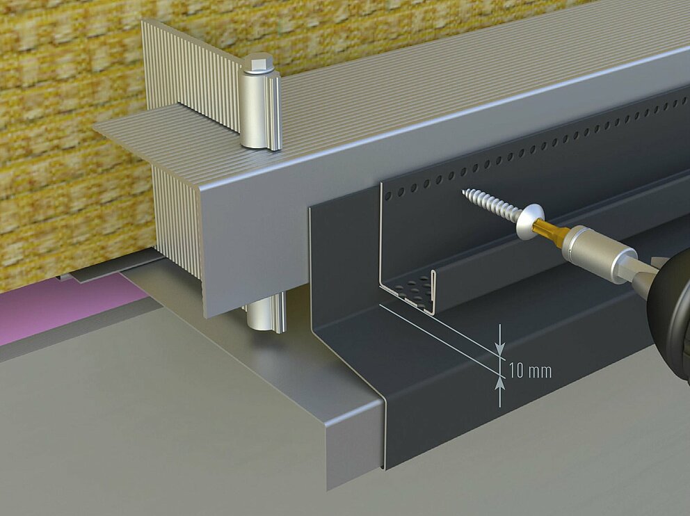 Bij een vast punt wordt de boorschroef direct door het startprofiel of het geperforeerde steekprofiel geschroefd. Om een schuifpunt te verkrijgen, ponst u de gewenste sleuf met een pons-sleuftang.