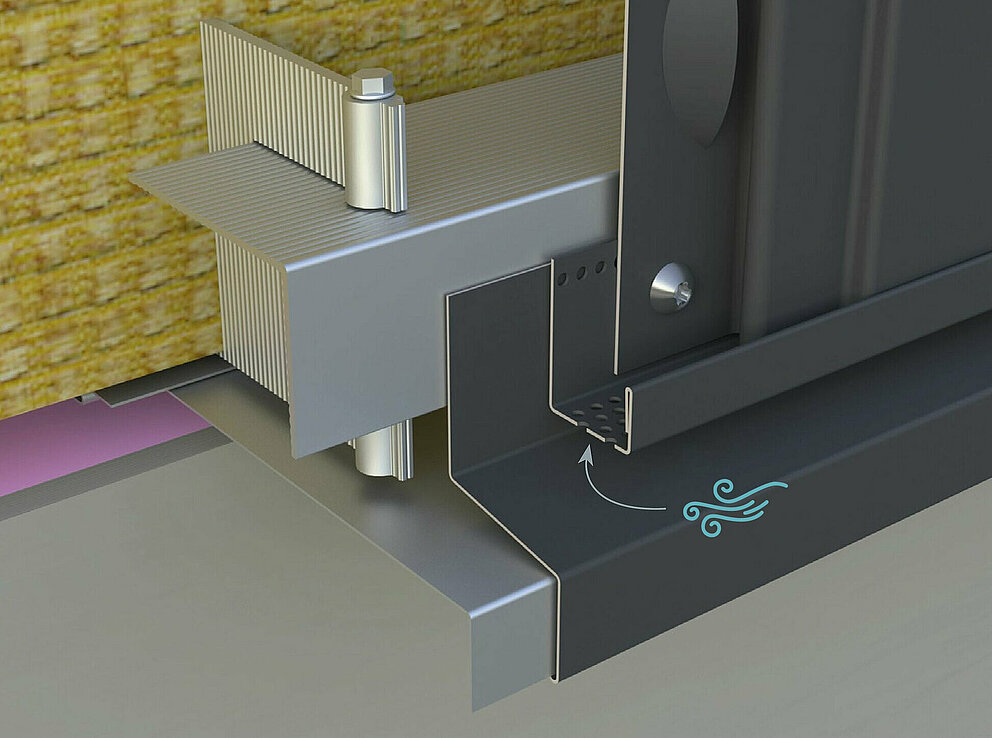 Bij gebruik van een geperforeerd steekprofiel en een Siding met eindomkanting moet ervoor gezorgd worden dat er een afstand van minimaal 5 mm tussen de eindafkanting en het geperforeerde steekprofiel in acht wordt genomen. Als de eindafkanting vlak tegen het geperforeerde steekprofiel ligt, is de doorsnede van de luchttoevoerleiding niet voldoende en is er geen functionerende ventilatie aan de achterzijde.